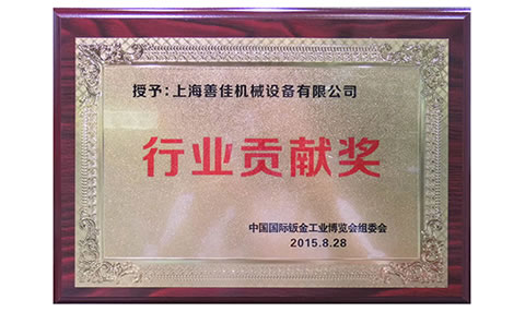 2015年8月28日CISIE2015中國(guó)國(guó)際鈑金工業(yè)博覽會(huì)在廣州隆重舉行,會(huì)上,上海善佳被中國(guó)國(guó)際鈑金工業(yè)博覽會(huì)組委會(huì)授予“行業(yè)貢獻(xiàn)獎(jiǎng)”;